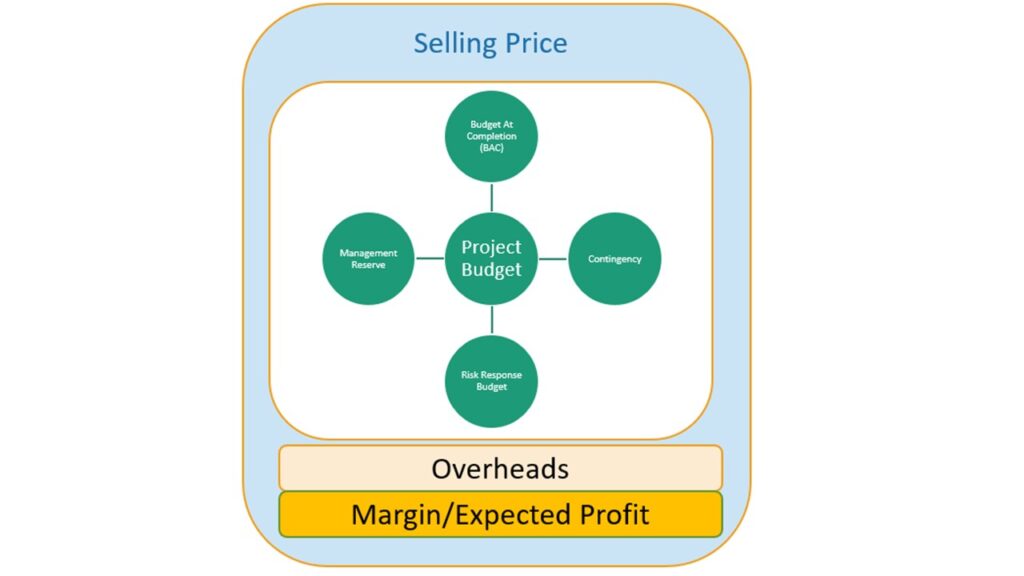 These four envelopes of the project budget are connected and interdependently related. Whenever a project team faces an issue (unpredicted event), they transfer the necessary budget from the CR into the BAC and update the cost baseline.